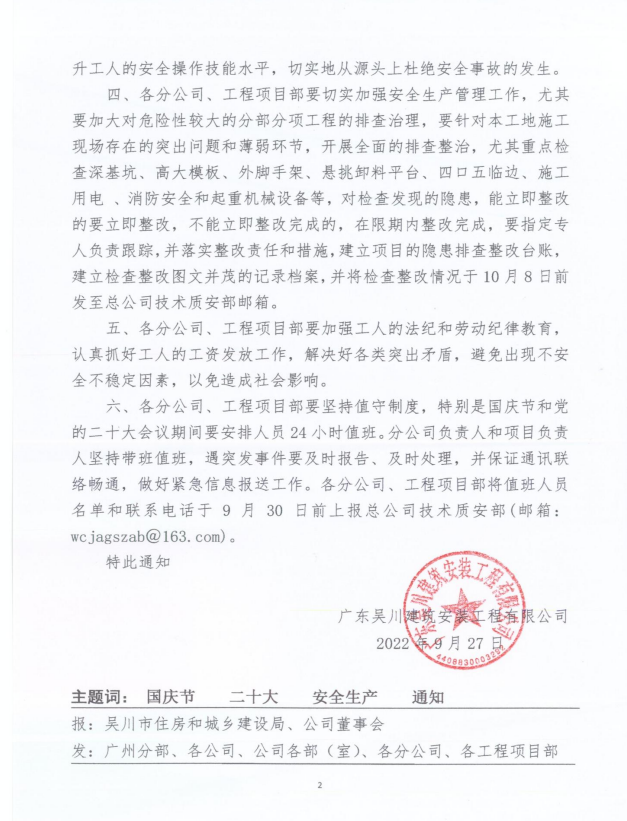 關(guān)于切實(shí)做好國(guó)慶節(jié)及黨的二十大期間安全生產(chǎn)管理工作的通知