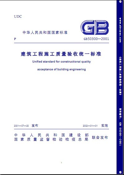建標[2001]157 號 《 國務(wù)院各有關(guān)部門,各省、自治區(qū)建設(shè)廳,直轄市建發(fā),計劃單位列市建委, 新疆生產(chǎn)建設(shè)兵團,各有關(guān)協(xié)會: 根據(jù)我部《關(guān)于印發(fā)一九九八年工程建筑國家標準制訂、修訂計劃(第二批) 的通知》(建標[1998]244 號)的要求,由建設(shè)部會同有關(guān)門部門共同修訂的《建筑工 程施工質(zhì)量驗收統(tǒng)一標準》,經(jīng)有關(guān)部門會審,批準為國家標準,編號為 GB50300-2001,自2002 年 1 月 1 日起施行,其中,3.0.3、5.0.4、5.0.7、6.0.3、6.0.4、 6.0.7 為強制性條文,必須嚴格執(zhí)行。原《建筑安裝工程質(zhì)量檢驗評定統(tǒng)一標準》 GBJ300-88 同時廢止。 本標準由建設(shè)部負責管理,中國建筑科學(xué)研究院負責具體解釋工作,建設(shè) 定額研究所組織中國建筑工業(yè)出版社出版發(fā)行。 中華人民共和國建設(shè)部 2001 年 7 月 20 日
